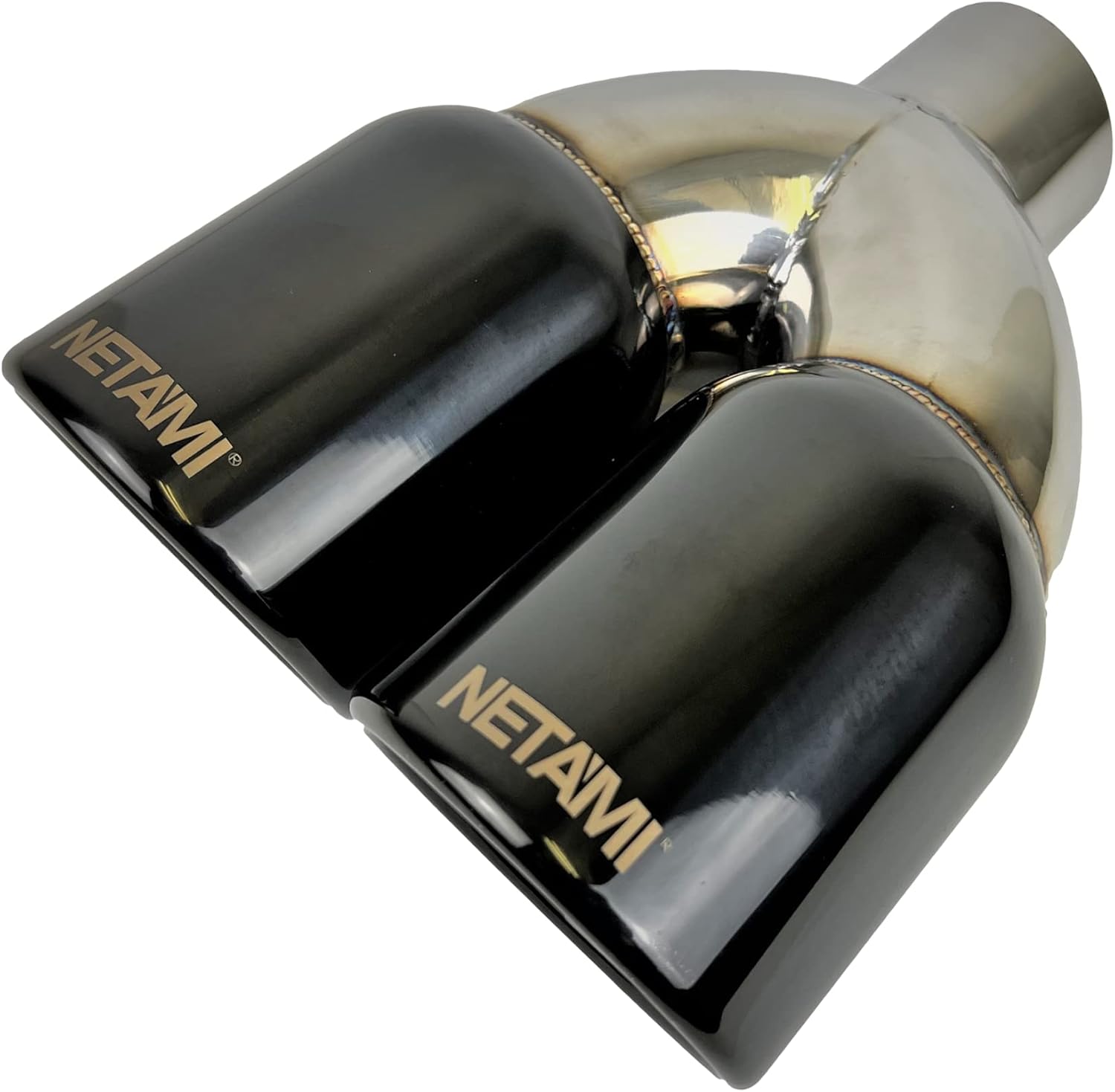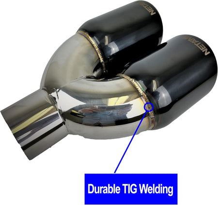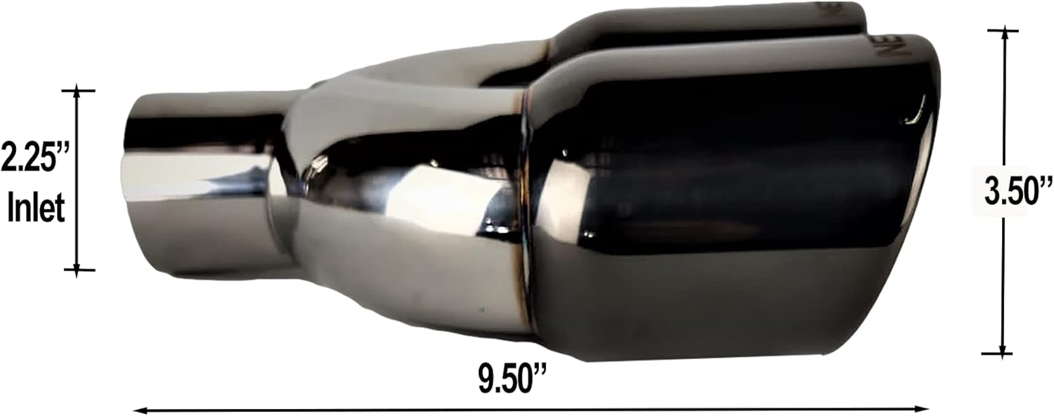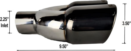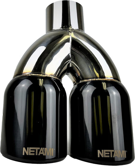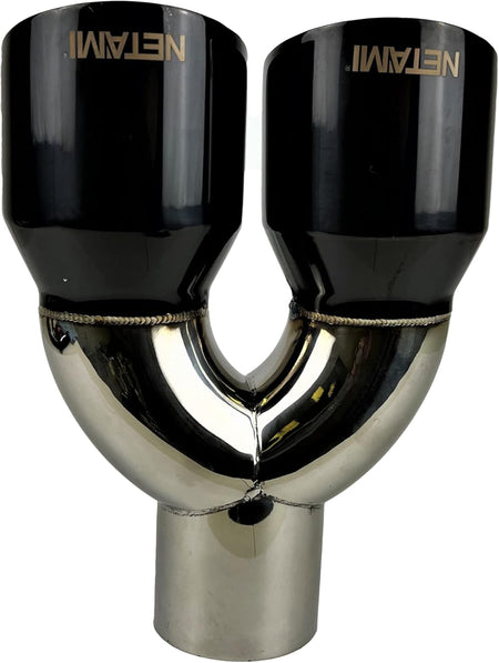 NETAMI | 2.25' Inlet to 3.5" Dual Outlet Stainless Steel Exhaust Tip Rolled Edge Double Wall Black Chrome